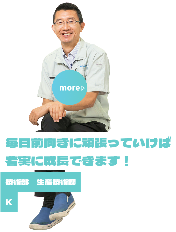 前職では毎日仕事に行きたくないと思っていましたが、転職後はそのような悩みは一度もありません。人にも恵まれ、残業もなく休みも取れるのでとても働きやすいと感じています。工場の仕事も冷暖房完備なので、働く環境も良いですよ!